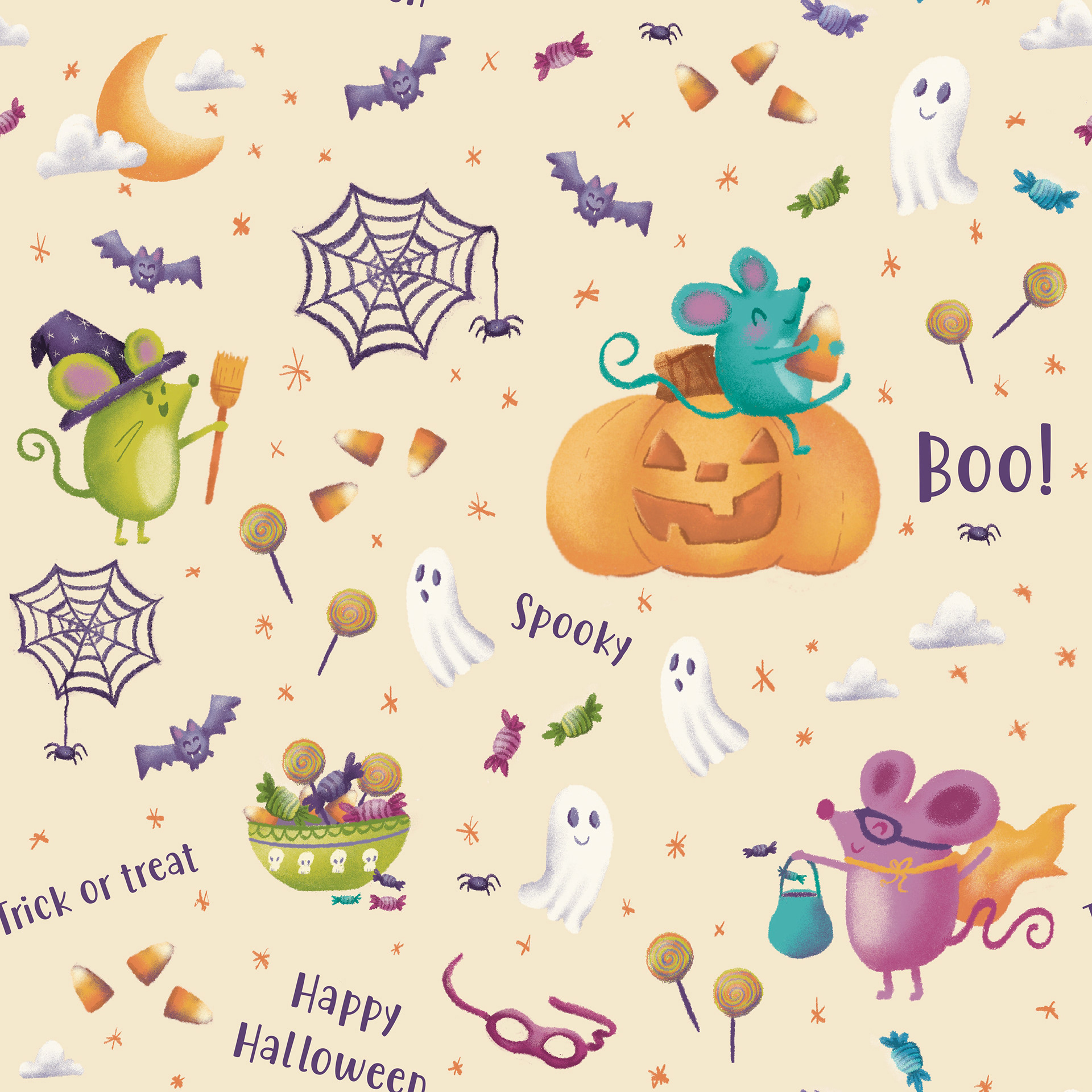 'Trick or Treat - yellow' Focal Pattern Digital Illustration